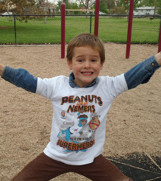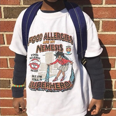 The little one is wearing one of his favorite food allergy superhero tee's by Allergy Superheroes. He said the only thing he forgot to bring to school was his cape. 😂